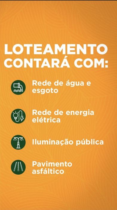 * Loteamento com ótima topografia, com infraestrutura completa: rede de drenagem, rede de água e esgoto, rede de energia elétrica, iluminação pública e pavimentação.